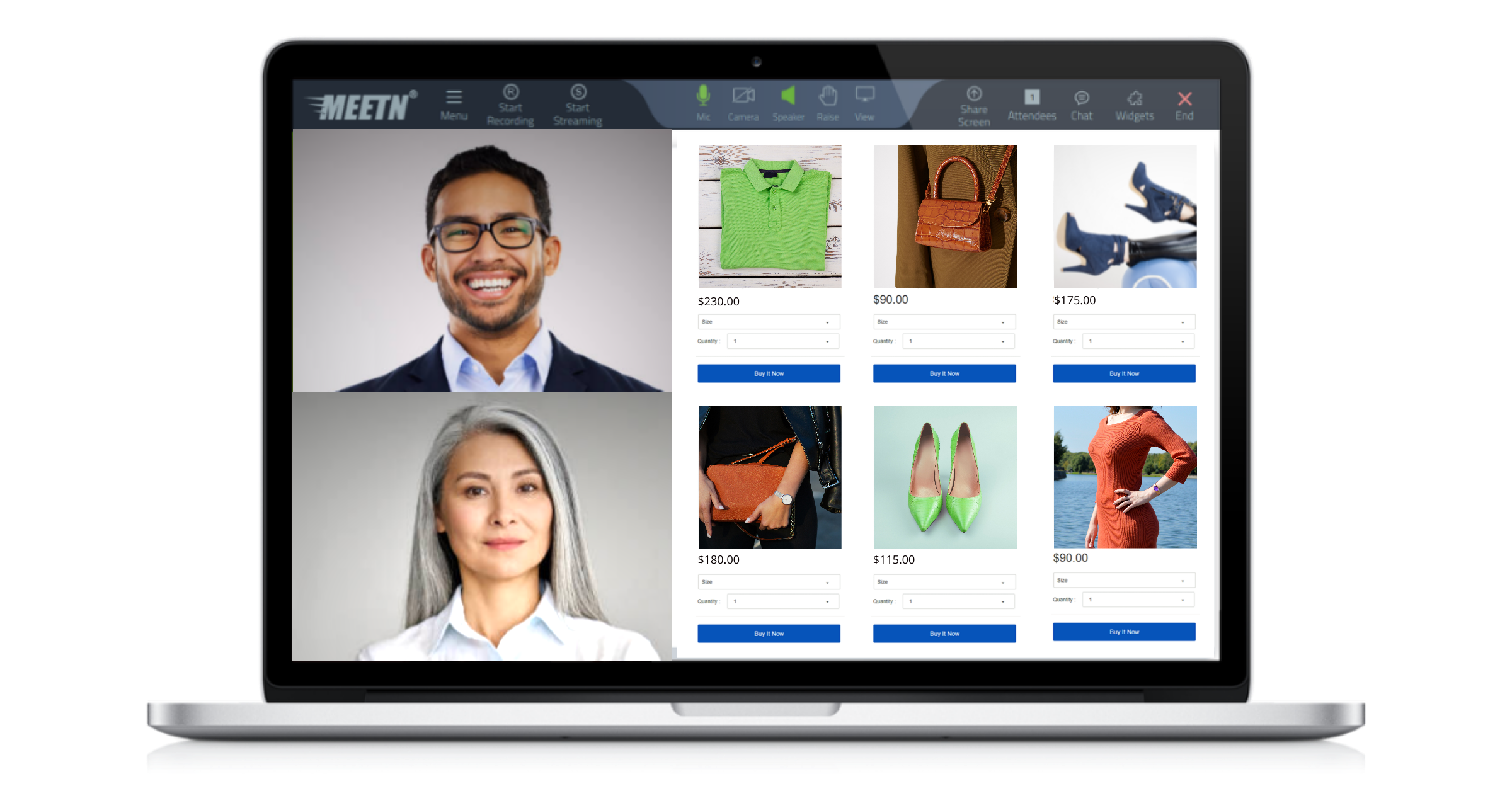 Sales: Improve your ROI with real time shopping, browsing, and registration forms. Meetn® can work with your web development team to help you integrate shoppable carts and product pages into your Meetn® room, so that attendees can check out in real time, during your presentation.